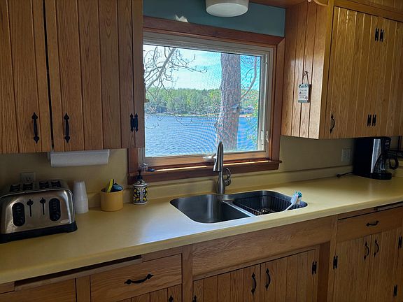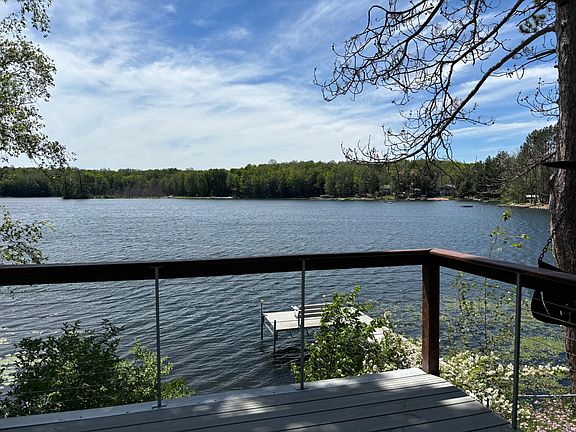 Breathtaking setting on Surprise Lake a 70 acre full-rec lake. One owner home that was very well taken care of! This 3 bedroom, 1.5 bath home has many wonderful memories that have been made here! Start your own memories at this quiet setting on 1.7 wooded acres with the home sitting only 22' from the waters edge and 185' of sandy frontage. Kitchen with Birch ceilings, oak cabinets, living room has a wood burning fireplace, enclosed porch that overlooks the lake and a full basement with bar area and half bath. Recent updates have been furnace, roof, chimney, dock and maintenance free decking. Home comes totally furnished for that turn key opportunity! Don't let this pass you by. Seller wishes to close no sooner than Sept 1, 2024