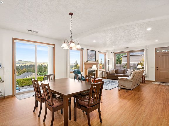 Move in ready home with master on the main! 2-story contemporary residence with master on the main. As you drive up the private driveway and arrive at this thoughtfully designed home, you'll be greeted by captivating views. Upon entering, you'll find a spacious open floor plan with large windows that showcase breathtaking sights of Mt. Hood and the surrounding valley. The open kitchen, dining, and living areas create an excellent space for entertaining and seamlessly connect to a patio where you can enjoy these fantastic views. The kitchen features granite countertops and custom wood cabinets with lower cabinet pull-out features. The stove top is plumbed for gas but is currently electric. The flooring through most of the home is luxury vinyl plank, with the exception of 2 bedrooms and bathrooms. This home includes three spacious bedrooms and three full bathrooms. The primary bedroom is located on the main floor and features a walk-in closet, a private bathroom, and a tranquil patio with private access. Upstairs, you will find a large bonus room with its own bathroom, making it ideal for a 4th bedroom, home office, or guest space. Outside, you'll be captivated by the stunning views and the private yard, which includes multiple patios for enjoying the outdoors. The property also boasts many mature blueberry bushes and shrubs, as well as a large shed. This meticulously cared-for home comes with a two-car garage that includes an indoor workshop. It is truly a must see!