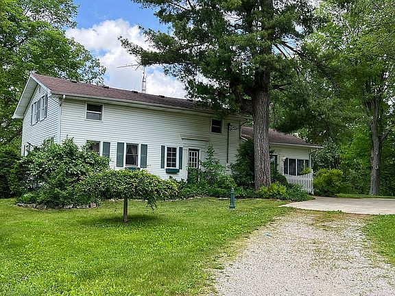 Two story farm house with three bedrooms and 2.1 baths. Large Master bedroom on main level with oak french doors, master bath and walk-in closet. Two bedrooms on second level with one full bath, tv area and walk-in closet area for storage. Half bath and pantry area off from kitchen. Vaulted ceiling with original exposed wood beams in kitchen and dining area. Brick fireplace in living room with sliding doors to rear covered patio. Detached heated garage that is currently used as a recreation building. Portion of the garage is finished with kitchen/dining area, living area with hardwood flooring, full bath and custom Pella patio door and windows. Privacy fenced area off of the rear of garage. Concrete block horse barn with six stalls, tack room area and outdoors automatic waterers. Concrete block lean-to in one pasture area. Older 2 story hip roof barn with 4 older stalls (barn is used for storage). Small storage shed for garden supplies. Beautiful 20 acres. Outdoor wood stove heats both the house and garage. Gross living area and building sizes are per county records. Will not pay any realtor commissions or they will be negotiated in price as this is a for sale-by-owner property. We request that purchasers show proof of pre-approval before showings.