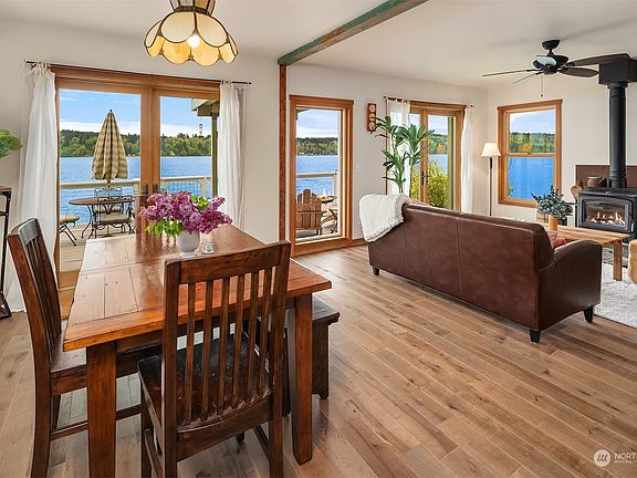Welcome to the most charming beach house on Vashon, where you'll be captivated by a mix of vintage materials and modern updates that make this home truly special. Rich hardwood floors, shiplap and reclaimed materials offer a nod to the past while modern updates including Trex deck, metal roof, wood-wrapped windows and French doors provide peace of mind. The 2nd floor is light-filled and its flexible, large space provides many opportunities. Relax by the fireplace on chilly days or take in the salty breeze and westerly views from the comfort of the covered outdoor loggia that is warmed by the home's original fireplace. Direct street access, fenced garden area and small boat storage complete this perfect water's edge retreat. Sold furnished.