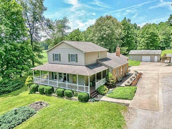 Welcome to your dream retreat nestled on 10.58 acres. This stunning property features 4-BR,3 Full Baths. Large cabinet filled kitchen w/major appliances conveying & highlighted by a wood burning stove. Formal dining room, Large family room as well as separate living room w/fireplace. Main Level Owners suite w/large private bath, main level office space (perfect for working from home).Beautiful hardwood flooring, Dual Zoned heating/cooling.2 1/2-Car Attached Garage & Two Detached Garages w/heat & concrete floors-both 32'x24'-Awesome space for the car enthusiast, or woodworker, or extra storage space. Also a 30'x12' storage building. Awesome wrap-around covered porch as well as a separate patio. This is a Fabulous Opportunity! Schedule your appointment today!