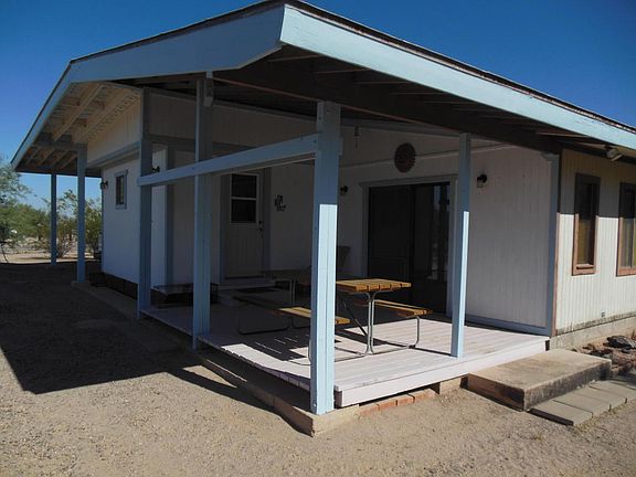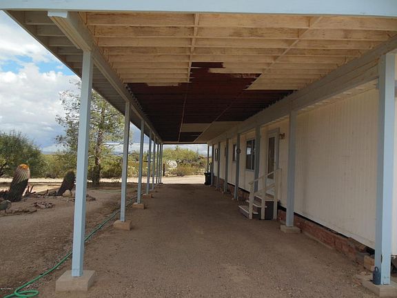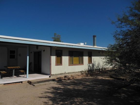 Original owner.Acre lot.Overall good shape,could use new carpet,ext wood needs some TLCt. Approx 840 sqft affixed MH plus 400 sq ft den addition with beautiful firepl, quality construction built appx 1982. Wood-burning fireplace has heatilator unit to heat the room.Yes,addition has permits.Separate 600 sq ft garage/wkshop listed as 1 car as only has 1 drivethru door, was blt w/Pima Co permit. Huge 3 car carport or porch on front of home. Heat pump for Central Heating/Airconditioning. Neighbors have fenced on all 3 sides. 2 covered rear porches, one on E side and one on W side.Seller thinks Comcast Cable out front.Price reflects no financing available (cash only), and retired seller's desire to sell ''As Is''. Mobile was affixed 5/11/1999 per Affidavit of Affixture filed w/Pima County