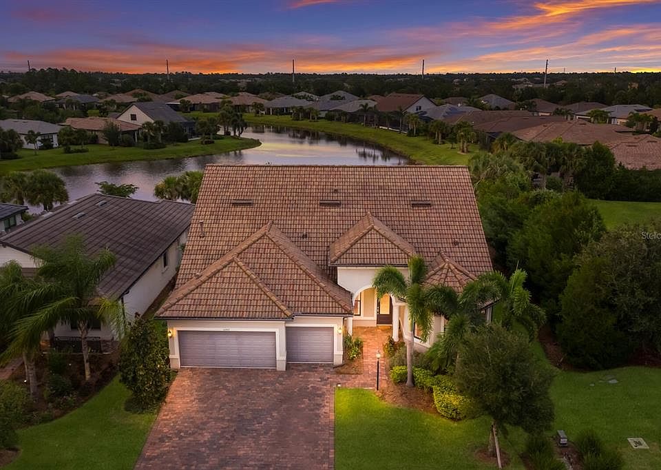 Welcome to this stunning, modern masterpiece! This spacious 3,664 square foot home boasts exquisite features and offers the perfect blend of luxury and comfort. Step inside and be captivated by the open layout, which seamlessly blends functionality and style. With 4 bedrooms, 4 bathrooms, a loft, and an office/den, there is plenty of space for all your needs. Built in 2018, this home is a testament to modern craftsmanship and attention to detail. Enjoy the breathtaking views of Long Lake from the comfort of your own home. With only 1 neighbor, the lakefront location ensures tranquility and a sense of serenity. And fear not, as the hurricane impact windows and doors provide the utmost protection and peace of mind. Prepare to be amazed by the pinnacle floorplan, featuring zero corner pocket doors that effortlessly merge the indoor and outdoor spaces. You will enjoy the extra privacy this lot features with a neighbor only on one side. Experience true Florida living as you soak up the sun and entertain guests in your private oasis. The interior of this home is just as exquisite as the exterior. Gorgeous engineered hardwood floors adorn the main living areas, master bedroom, and office, infusing elegance and warmth throughout. The chef's kitchen is a culinary enthusiast's dream, boasting stainless steel appliances, a large pantry, under-cabinet lighting, and a beautiful tile backsplash. As you venture outside, the heated saltwater pool invites you to take a dip and unwind. The 3-car garage with an epoxy finished floor and work sink provides ample space for your vehicles and storage needs. Del Webb is a gated, maintenance-free, 55+ neighborhood that offers an abundance of amenities for an unparalleled lifestyle. With a full-time lifestyle director and over 60 clubs you can enjoy a vibrant community that organizes exciting activities and events. Indulge in delectable dining at the Lake House restaurant or spend your days at the impressive 26,000 square foot clubhouse. Sports enthusiasts will delight in the 8 lighted pickleball courts and 6 tennis courts, allowing for endless hours of friendly competition. Don't miss this incredible opportunity to make this home yours! Experience luxury, tranquility, and a vibrant community all in one place. Schedule your private showing today and prepare to embrace the lifestyle you deserve.
