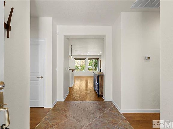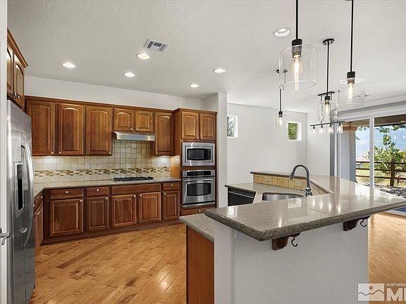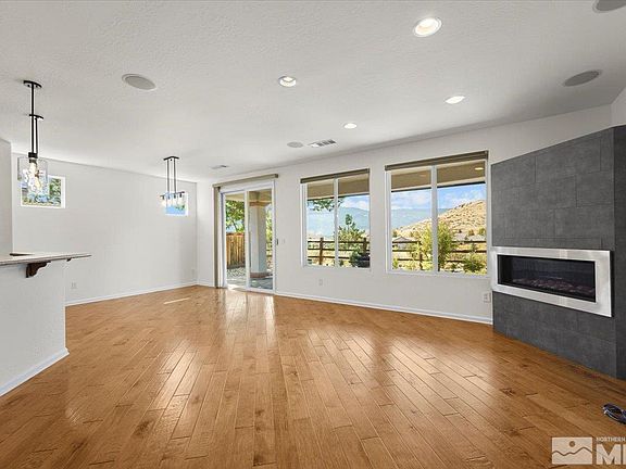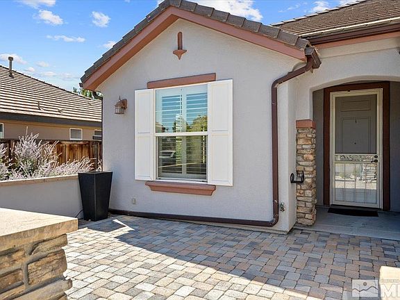 Discover your dream home with breathtaking mountain views from this luxurious Northstar model in Sierra Canyon. Situated on an oversized lot with nearly $100k in upgrades, this stunning property is sure to impress. The open living area features a custom fireplace and large windows that perfectly frame the sweeping views. The chef's kitchen boasts granite countertops, stainless steel appliances, and a built-in...SEE EXTENDED REMARKS..., ...wine bar -- ideal for entertaining. The primary suite is a true retreat, complete with a bay window, spacious walk-in shower with a multi-function shower panel and rain shower head, live-edge leathered stone counters, heated tile floors, and an extra large walk-in closet with custom organizers. A generous guest bedroom, upgraded bathroom, and private den provide ample space for guests or a home office. You'll find many upgrades throughout: wood floors, designer carpet, upgraded light fixtures, ceiling fans in every room, a built-in desk and shelving in the office, an upgraded laundry room with cabinets and a sink, a security system, surround sound, a smart thermostat, and recent updates such as interior and exterior paint, a new furnace (2021), new A/C (2023), new hot water heater (2022), and a new salt water hot tub (2021). Enjoy the beautifully landscaped, low-maintenance backyard with zeroscaping, complete with a covered patio with a remote controlled awning, 6-person hot tub, water feature, garden area, and fruit trees (apple & nectarine). The front courtyard offers a peaceful spot to relax, while the oversized 2-car garage provides ample storage. Situated on a quiet street, this move-in-ready home is just blocks from the clubhouse, offering incredible amenities: an indoor lap pool, a fitness center, tennis and pickleball courts, a billiards room, and numerous social clubs. Conveniently located near downtown Reno, hospitals, VA facilities, Reno-Tahoe International Airport, and just a short drive to Lake Tahoe and ski resorts, this home offers the perfect combination of comfort, luxury, and convenience. Schedule your showing today!