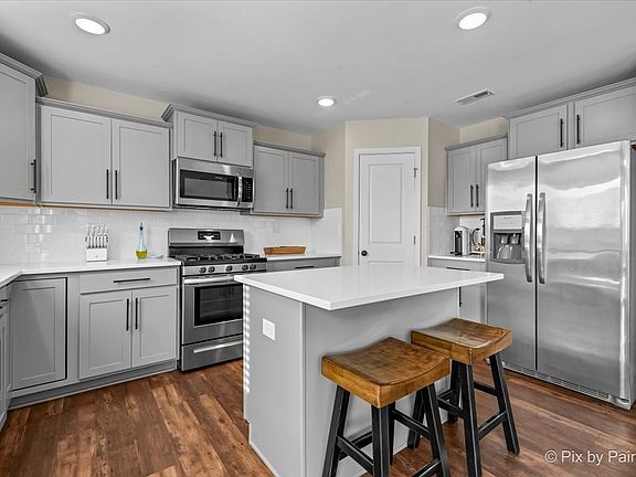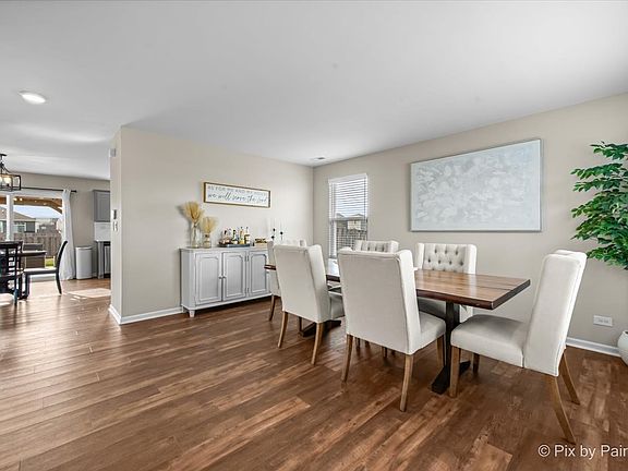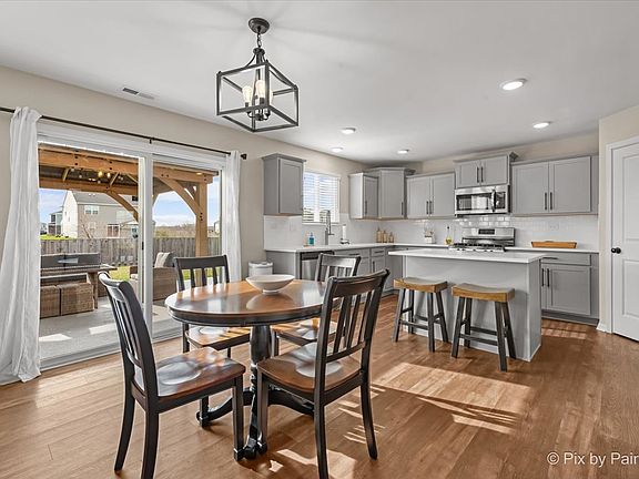 Welcome to the stunning Halsted model! This home offers over 2,000 sq ft of thoughtfully designed living space, blending comfort, style, and function in a way that feels like home from the moment you step in. Built just 6 years ago and beautifully updated and maintained by the original owner, this home is truly MOVE-IN READY. Step inside to an open-concept layout that seamlessly connects the kitchen, dining, and family room - perfect for hosting gatherings or enjoying your morning coffee with tranquil backyard views. NEW Waterproof LVP flooring throughout adds a modern and clean look to the entire home. The designer kitchen is a dream: upgraded lighting, walk-in pantry, center island, stainless steel appliances, light gray cabinetry, white quartz counters and tile backsplash for a stylish touch. Patio doors lead to a beautifully upgraded backyard with an extended concrete patio with an epoxy treatment, a covered pergola and a fully fenced yard - ideal for relaxing or entertaining outdoors. The back and side yard back to a 60' easement, offering extra privacy and peaceful views. Downstairs also features a flexible main-level bonus room, perfect as a home office, playroom, or formal living space, currently a formal dining room - plus a convenient mudroom with walk-in closet for extra storage and organization. Upstairs, you'll find a large primary suite with dual vanities, a 5' stand-up shower, and walk-in closet. Two additional bedrooms (each with their own walk-in closet), a spacious loft, and second-floor laundry round out this incredibly functional second level. A huge plus for living here - No SSA tax - enjoy the savings! Located in the highly sought-after Parkside at Cambridge Lakes, where the lifestyle is just as impressive as the home. Enjoy access to: Clubhouse with gym & fitness classes, Outdoor pool & splash pad, Basketball courts & baseball fields, Walking/biking trails, Charter school, skate park, ponds & fishing, Kayaking and family events year-round. Don't miss your chance to make this exceptional home your own-schedule your private tour today!