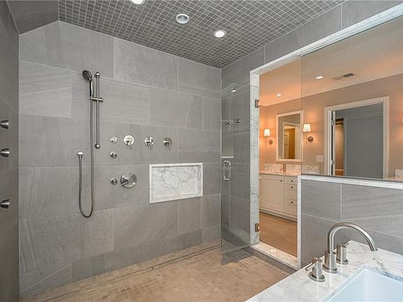 In a neighborhood known for beautiful walks by the river, this private home has it all! Gorgeous house built in a French provincial style and tucked away on a one acre, wooded lot. Inside boasts a grand entry, spectacular entertaining kitchen and ample space for working and living. Upstairs Owner's Suite is a true sanctuary: bedside fireplace, sitting room with bar, renovated spa bath and enormous walk-in closet. If that wasn't enough, the terrace level has a home gym and office with the option for an in-law suite or apartment. Over the summer enjoy your personal pool and hot tub. Let the kids and pets play safely in the fenced-in side yard (originally set up as a batting cage!). Possible garden area, too.