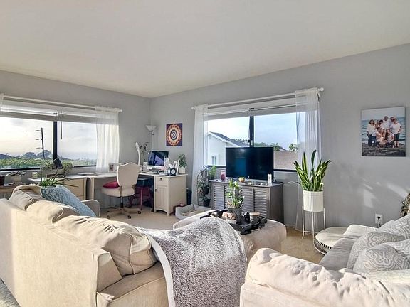 Panoramic ocean views and peaceful surroundings await! Showings by appointment only Sunday by appointment only- 10:30am to 12:30pm. DM me to schedule a showing. This 2nd floor, 800 s/f one-bedroom unit is located on an exceptional property that's quite magical, serene & unique. Minutes to surfing, beach, shopping, dining, movies, 5 fwy & more. It even has storage space for your board!! And is in a beautiful walking neighborhood. As you arrive, the detached residence has a separate, private entrance just up a set of stairs. There you will find your own nice-sized deck above a beautiful ficus with amazing ocean views. The unit includes a full kitchen has one year old stainless appliances including a dishwasher and a small island with a separate dining area and hardwood floors. Just off the kitchen is the living area which is big enough for a workspace and seating area. Additionally, there is a generous-sized bedroom (large enough for a king bed) as well as two closets. The unit has newer light fixtures, and blinds, and was recently painted. One "covered" parking spot is included, along with electricity, gas, and water (electric car charging not included). Small dogs are allowed with "pet rent" and small move in fee applies. Single occupant preferred (additional occupants would be $50/mo to account for utilities) Showing by appointment only. Early move in possible with current tenant approval. Single occupancy preferred & non-smokers only and will consider a well-behaved dog. Gas, water, and electricity are included although electric car charging not included. The renter is responsible for their own internet. Renters are expected to have rental insurance to cover the cost of personal item replacement and pet incidents if a pet is in the unit.