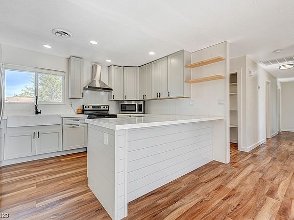 This adorable cozy home is fully remodeled. The Kitchen is complete with brand new shaker cabinets, stainless steel appliances(fridge stays), and a large breakfast bar with custom backsplash and shelving. The interior and exterior are all freshly painted, and the flooring is waterproof laminate. There is 1 car garage with a covered carport that can easily be converted into a second garage or converted into an extra living space. The backyard is a homesteaders dream with grapevines, a passion fruit vine, established strawberries, a raspberry bush, 2 blackberry bushes, 1 boysenberry bush. There are the following trees: pomegranate, lime, lemon, tangerine, apple, peach, and one mix (apricot, plum peach & Nectarine tree). 4 garden boxes are ready for your annual vegetables and there is still room for a greenhouse, chicken pen, and space to sit back and enjoy the the peace and quite of rural backyard living.