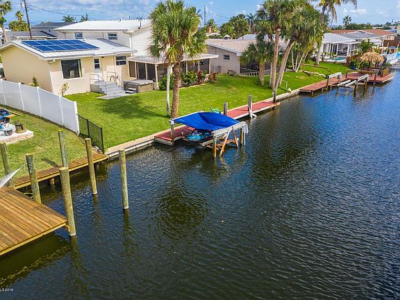 DO YOU HAVE A BIG BOAT? This is the home for you. No bridges to the open water. The freshly dredged channel from the Banana River can accommodate boats drafting 8 feet (maybe more) plus the deep water canal is estimated at 80 feet wide. In addition to being a boaters paradise, the entire home has been beautifully remodeled. Finishes include a gorgeous kitchen with granite counter tops and stainless steel appliances. Tile floors in the main entry, kitchen, family room and original hardwood oak flooring in the stairwell up to the 2nd floor bedrooms. Walk in closets in every bedroom. Big screened porch faces south and leaves plenty of room to add a pool. PLUS whole house solar panels which means FREE electric. Call to schedule your showing today.