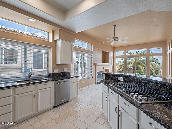 Looking for a move-in ready home? This is it! All new KitchenAid appliances, new granite counters, new kitchen sink, fresh paint throughout, new travertine tile & new carpet. Enjoy privacy & mountain views from this premium lot backing up to hundreds of acres of state land. Updated kitchen with great cabinet space is open to family room with gas fireplace. Huge living/dining area with walls of windows overlooking beautifully landscaped yard & open space. 2 bedrooms PLUS an office off of the kitchen. Primary suite is spacious with large walk-in closet, soaking tub & separate shower. Garage with storage, newer HVAC & water heater. Take advantage of all that Sun City Vistoso has to offer including exercise facilities, pool/spa, tennis, racquetball, dining, golf and so much more!