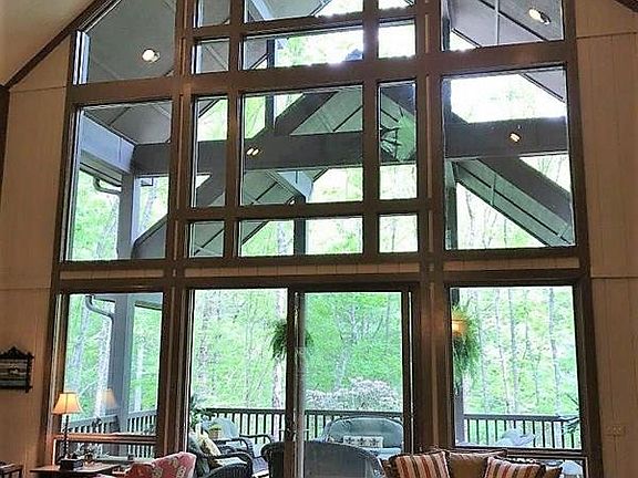 This fabulous mountain home "The Foxhole" with dramatic cathedral ceilings and walls of glass in the great room will welcome you the minute you step in. Wonderful architectural features are found through out the home. Enjoy the mountain breeze or entertain guests on the large covered porch and listen to the gentle sounds of the stream. The two tiered roof lines on the over-sized deck adds an interesting architectural touch. Surrounding the deck the Mountain laurel are blooming and the many rhododendron are ready to pop. If family and friends are not gathered on the deck, the floor to ceiling stone wood burning fireplace is their gathering spot. The private more intimate screened porch has a wood burning fireplace to enjoy that glass of wine or just nestle in with a good book. This is a great home for a couple as everything you need is on one level. If you need the space,one can use the loft area. There are four in suite bedrooms in the home - two on the main level and two in the loft. The second bedroom in the loft has two queens or it could be a bunk room. The Master is on the main and as well as the second guest room and bath. It is currently being used as an office. The 2 guest suites and den/office up stairs over look the loft to the great room below. Lots of storage, several cedar lined closets. Over sized 2 car garage. Gated with security. This is in a great location between Cashiers and Highlands. The home is located in Highlands Falls Country Club but membership is not required to enjoy living in this gated community. Should one wish to join there are numerous amenities to be enjoyed. Golf, tennis, croquet, hiking, fishing, pool, and numerous interest groups create a very diversified set of family and friends that live and enjoy the area.This home is what so many folks are looking for....just the right size with everything you need on one level and an over sized garage. Put this home on your list to see. You will be glad that you did.