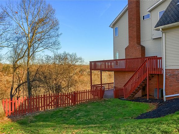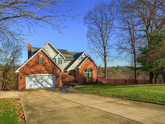 Spectacular view, great open floor plan to entertain guests. Lovely 2-story brick home is on a cul-de-sac street w/ a symphony of comfort and style, a canvas waiting for your unique touch. Step into a warm and inviting living space that exudes a sense of home. Large windows & multiple entrances to the main level, rear wrap around deck bathes the space in natural light. The well-designed kitchen is equipped with modern amenities, perfect for everyday meals or gourmet cooking. Enjoy cozy evenings in the family room w/floor to ceiling brick fireplace. Venture into the spacious bedrooms, where tranquility & comfort await. The master is a private retreat, offering a sanctuary for relaxation with its own private deck & jetted corner tub. Huge basement w/ walk-out to yet another deck is ready for your imagination - game, theater, wine room. Level, easy maintenance front & side yard. Moments away from schools, shopping + all essential amenities. Appx 1/2 hr to the airport + downtown Pgh.