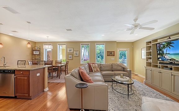 Location, location, location. Walk to shops and restaurants. Quiet. Perfect urban oasis with a neighborhood feel. Steps from everything yet quaint and quiet, this three-bedroom row house/condo is remarkably spacious and beautifully updated. Entering from the beautiful courtyard with pool, natural light illuminates the residence from skylights and front, rear and side windows. The open kitchen features stainless appliances, natural gas range, granite countertops, bar seating, Murano glass pendant lights and a new backsplash. The dining room and great room are extensions of the kitchen area, promoting flowing spaces for everyday living or entertaining. The first floor also features a guest bedroom, full bath, and under stair storage. Upstairs, an impressive built-in desk has been added to the loft space, wood floors, while the master suite represents a departure from daily stress with features like an expanded master bath offering marble-tiled shower with river rock flooring and dual shower heads and jets. The new vanity was created with sliding mirrors to conceal or reveal extra windows. The upstairs space also features the second en-suite bedroom with walk-in closet and laundry room. Andersen impact windows and doors and two parking spaces complete this ideal retreat. The Villas on Laurel is at the epicenter of both downtown activity and community culture with a pool on-site and neighboring park. Burns Court and Main Street shopping and dining, the Bayfront, art galleries, theatres, Saturday Farmers Market and Selby Gardens are all within close proximity. Washer, dryer, internet are all added features. Nine condos total on the property. Seasonal and long term rentals. Close to beaches, shopping, and movie theatre, and the theatre district. A real hidden gem! Just bring your toothbrush. Fully furnished. No smoking or pets. Master bedroom on 2nd floor. Tenants pay their own electric. Seasonal or Long Term, available May, 2025. Lease to be 6 months or longer. Non smokers, no pets. Tenants pay gas, electric and internet. Garbage and water included in rent.