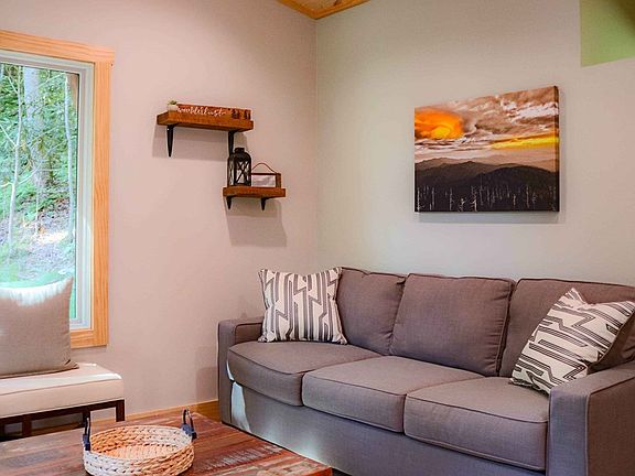 Back on the market. Mountain Laurel Hideaway is a mountain modern cabin located in a community with great rental history! This cabin is currently a vacation rental and turnkey. Absolute perfect location between Bryson City and Cherokee NC with easy access. The cabin features 1 BR & 1 BA with a cantilevered bunk room for the kiddos or extra guests. T&G ceilings throughout with recessed lighting and water resistant laminate plank flooring. White and copper granite countertops in the kitchen and bathroom. The bathroom features an extra large rain head shower, glass doors, and beautiful tile work. Cabin was custom designed to naturally fit into the quiet and private corner property. Built specifically to be a low maintenance, energy efficient vacation rental property. Small fire pit area around back along with a hot tub. Rental history is for first year. Stay in the cabin whenever you want to visit the Smokies and rent it out the remainder of the year. Perfect size cabin. Natural setting with minimal landscaping/maintenance. Being sold as an Investment property. Additional offer available to continue the Property Management. Owner is the Broker.