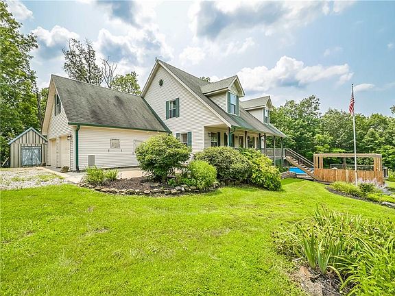 This two story home is nestled on 4+ acres off of 46 W. in Columbus and sits on a hill overlooking the tree line. Surrounded by nature, mature trees, flowers and offers privacy on a peaceful setting. The wrap porch connects to the new pool deck and pergola. Spacious floor plan with many upgrades and updates. This home is a must see!