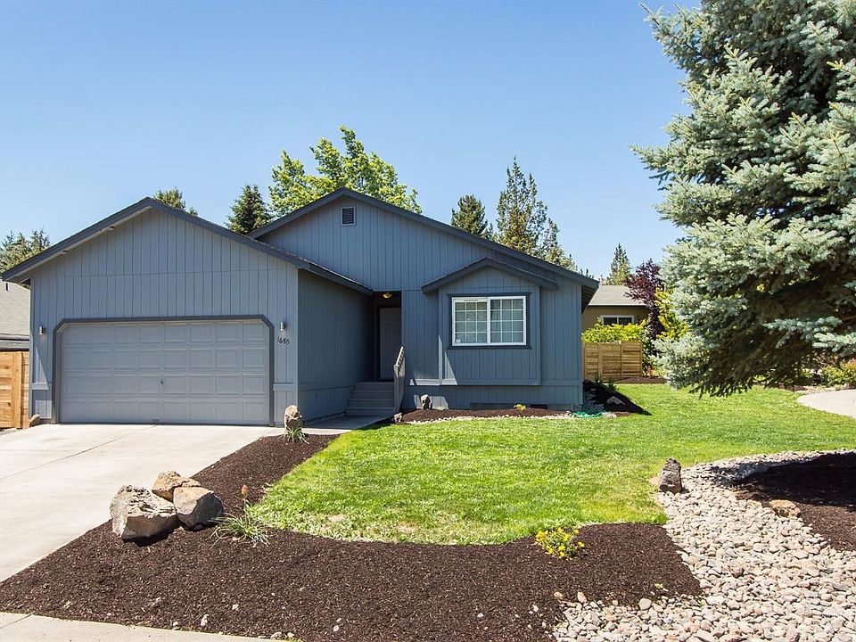This cozy 3-BR home is as neat as a pin. Remodeled throughout including newly painted interior and exterior. All new kitchen with skylight and new fixtures, cabinets and stainless appliances. Vaulted ceiling, attractive laminate floors. Newly landscaped w/ fenced back yard and inviting shade tree. Rear deck connects to paver walkway and outdoor living area. Corner lot on cul-de-sac. Convenient NE Bend location near Mountain View and Big Sky parks, St. Charles Medical Center and Forum Shopping Center.