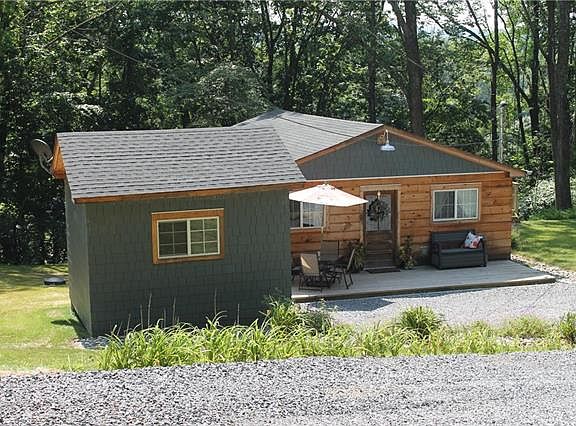 Talk about pristine! This newly renovated home has all the rustic character and charm to go with it. The exterior of the home has a new roof and wood siding. Enjoy the summer nights out back on the patio and listen to the river flow in sweet serenity. Make your way inside and you are greeted with beautiful exposed wood beams that flow throughout the home, complimented by the gorgeous wood flooring. The open concept country kitchen flows into the family room. There is no shortage of natural light with brand new windows around the whole home. Storage your after? No problem with the beautiful detached building and basement enclosed. There is plenty of parking and privacy surrounding you with the lot above that is deeded separate included in the sale of this perfect property. There are also deeded river rights, and it doesn't need flood insurance! Located conveniently minutes from route 80. This will not last long so set up your showing and find your new piece of paradise.
