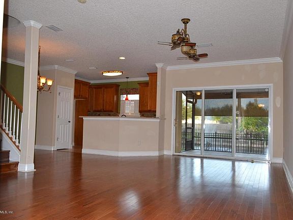 BACK ON MARKET! COME AND GET IT! CLASSY TOWN HOME, gated, IN THE HEART OF FLEMING ISLAND, tile barrel roof, 10' ceilings, gorgeous wood floors lead to living and dining with crown molding, views of water feature, screened porch and pavered patio. Kitchen includes Corian counters, 42'' Amazon Oak cabinets, all stainless appliances, breakfast bar, wood stairway leads to master suite and deluxe bath area includes garden tub, for your convenience laundry closet upstairs and 2 more bedrooms with bath. BONUS FOR THIS UNIT, (not the newer ones) HOME HAS THE ADDED FEATURE/SPACE DOWNSTAIRS FOR AN ELEVATOR to be added IF NEEDED). This home is ready for your CHRISTMAS TREE! A RATED SCHOOLS, EXCELLENT SHOPPING, EASY ACCESS FOR YOUR TRAVELLING.