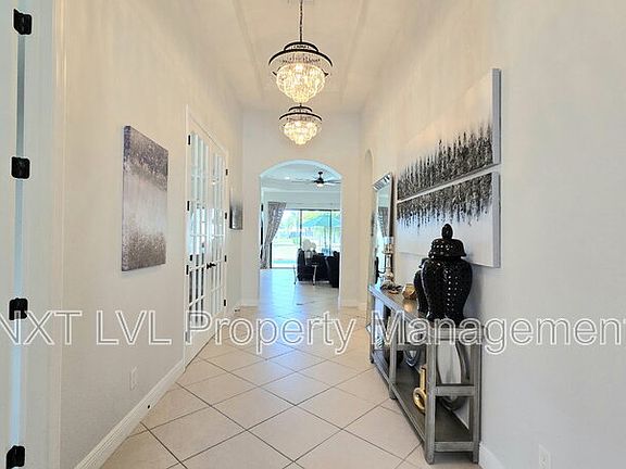 Welcome to this beautiful Seville model home featuring 3 bedrooms (one is an en-suite), 3 bathrooms, an office, and 2,088 square feet of living space. This home boasts breathtaking western sunset views and is a short walk from the community pool and amenities. Inside, you'll find tile flooring in main living areas and laminate wood floors in all bedrooms. Direct lanai access from the master bedroom.