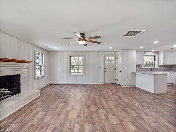 What a wonderful full brick home in popular China Grove! This three bedroom, two and one half bath home has so much to offer with a large .80 acre lot, rocking chair front porch, tons of storage and a brand new kitchen and three brand new bathrooms! This home has a very large great room and carport plus an extra room for plants, toys, a shop or just extra storage! Light Cabinetry, granite countertops and such a fabulous primary suite including huge walk-in shower and large walk-in closet. Seller has just installed a brand new septic system and water heater. No HOA. Seller has added stainless refrigerator in kitchen since photos were taken.