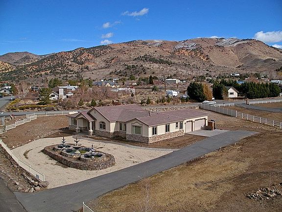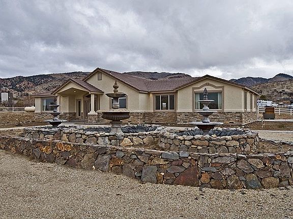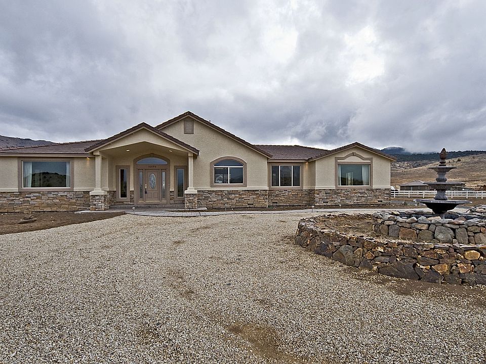 Located in the foothills of South Reno, this beautiful custom home is located in the gated community of Majestic Ranch Estates and offers 360 degree mountain views. The stucco/rock exterior and tile roof creates an expectation of the additional interior upgrades of solid surface granite kitchen counters, hickory cabinets, garbage disposal and stainless appliances: double ovens, built-in microwave, dishwasher and refrigerator. This great room concept includes gas fireplace, large dining area and gourmet kitchen. This over 1.2 acre parcel includes partial landscaping, three water features, fully fenced and zoned for horses. Neighborhood Description This is a wonderful, quiet neighborhood, zoned for horses. Everywhere you look there are incredible views of the surrounding mountains and you will enjoy watching the quail strut through your yard.