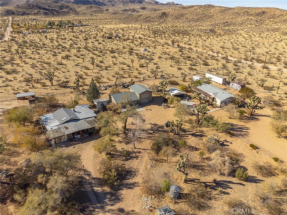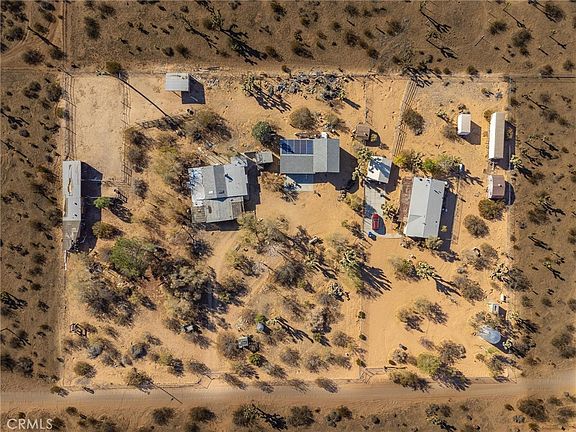 Welcome to Fair View Valley!! Nestled on the east side of Apple Valley. One main mobile home built in 2006, a large secondary unit with its own entrance and a big 3 two story detached garage.This exceptional home unfolds across 3 ADJOINING PARCELS, spanning a generous 2.7 Acres, adorned with meticulously crafted fences and cross-fences. The property boasts a private WELL and dual gated entries, exuding an air of exclusivity. The primary dwelling, a 2006 Manufactured Golden Sun Home, spans 1296 square feet, featuring 2 bedrooms, a versatile bonus room, and 2 baths. A thoughtfully designed split floor-plan seamlessly integrates the kitchen with the living and dining areas, while a pellet stove adds to the ambiance. The property includes an indoor laundry room, covered wood deck patio, separate pump house, and a sizable water tank for fire reserves. A capacious carport, storage shed, and fenced dog yard enhance the private entry section. Further, a substantial two-car and RV workshop with roll-up doors complements the versatile infrastructure. On the southern expanse, a venerable frame-built home from 1958 beckons with opportunity to put your own touches, its own gated entry, well pump house, potting shed, and tack feed room. Tucked away approximately 2 miles down a rustic dirt road, this abode offers seclusion in a community of petite ranches. The entire estate, enriched with mature landscaping, awaits transformation into a captivating two-home ranchette by an individual with vision and expertise. An invitation is extended to schedule a private showing and explore the boundless potential in this remarkable home!