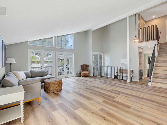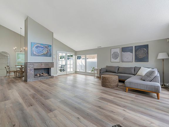 This stunning residence is situated just minutes from the beach and Huntington Harbour, offering over 2,000 square feet of living space. Upon entering through the gated front courtyard, you are welcomed into a living room adorned with elegant hard surface flooring, soaring ceilings, and a cozy fireplace. The dining room seamlessly connects to the upgraded kitchen, which boasts quartz countertops, stainless steel appliances, and a breakfast bar. The bright and airy family room features upgraded plantation shutters that overlook the entertainer's backyard, complete with a beautiful spa, fireplace, barbecue area, and lush landscaping. Additionally, there is a convenient main-level bedroom with mirrored closet doors and a full bathroom. The upstairs primary suite is a true retreat, featuring vaulted ceilings and French doors that open to an oversized balcony. The primary ensuite bathroom includes an upgraded dual vanity and a walk-in shower. Two additional bedrooms are also located on the upper level, along with a second full bathroom equipped with a shower/tub combination. Enjoy the convenience of walking to nearby local parks, the beach, and various shopping and dining options. This home is fully furnished and the lease term is flexible starting at 3 months. The first month's rent and security is due at signing. Property is furnished and has a flexible lease term starting at 3 months.