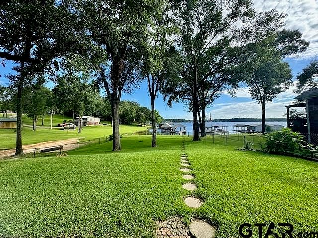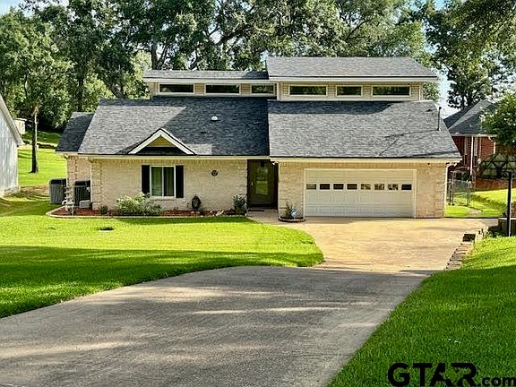 Lake season is upon us! Feast your eyes on this IMPECCABLE 3/2/3 STEEL FRAME, LAKEFRONT property! Situated on over half an acre, this is the perfect entertaining property, weekend getaway, or peaceful sanctuary. The abundance of windows allows for captivating lake views year-round. The back patio is the perfect spot for entertaining while keeping the kiddos and fur babies safe within the fenced in back yard. Go beyond the gate and have a day on Lake Tyler accommodating the water enthusiast at its finest! With a boat house, equipped with two boat lifts and electric jet ski lift, providing accessibility to the water effortlessly! Come inside and cool off or warm up to the open floor plan with wood burning fireplace, cathedral ceilings and updated kitchen including ample storage, granite countertops, wine fridge, and oversized pantry. Why not indulge in the lake scenery while washing dishes?! Two guest bedrooms downstairs share a generous bathroom with granite, double lavatories, and a specially designed sun tunnel so a light is not even necessary during the day saving on energy costs! The entire second floor is dedicated to the primary suite! Enjoy the privacy, cost efficiency, and VIEWS of having this addition on the second level. Boasting double vanities, standalone shower, garden soaking tub and enormous walk-in closet; it is your own spa! Relax away the day on the lake and step out onto your private balcony to listen the waves or keep the door open and let them serenade you to sleep with the cool breeze off the water. Why make lake time only a season, make it your lifestyle!