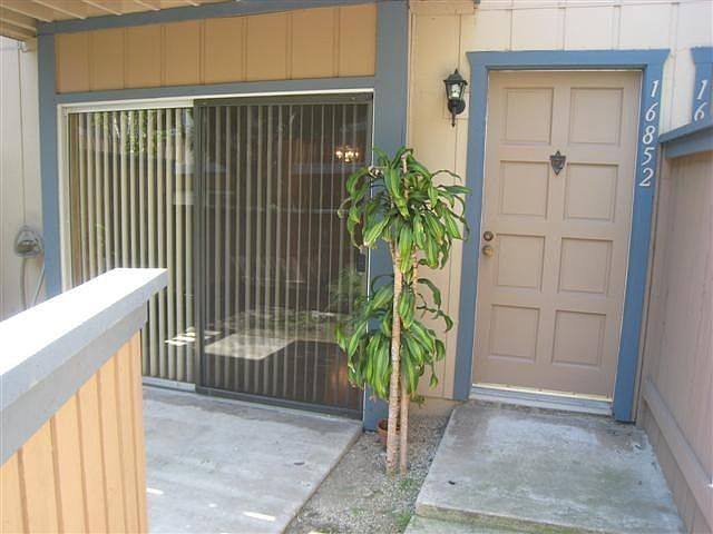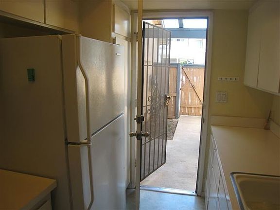 Close to shopping, transportation, beach, schools. Association pool, spa and clubhouse. Single car garage plus outside parking. Washer and dryer hookups in garage. Gas fireplace in front room. Dishwasher, disposer, gas oven/range, refrigerator. Owner pays HOA, pool, gardener, trash. Tenant pays gas, electric, water.