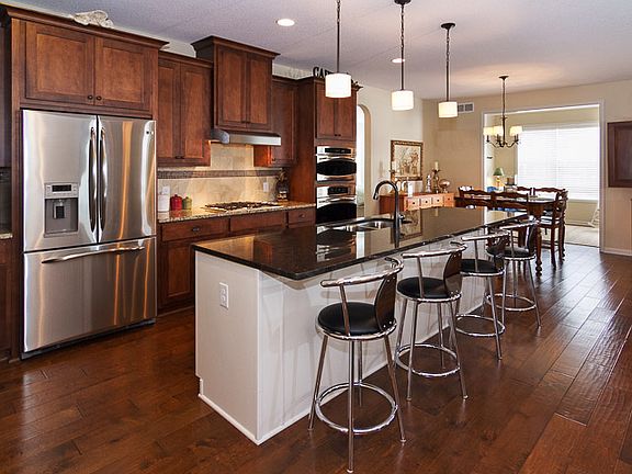 Former model home- shows BETTER then a model! Why build when you can purchase a home with all the hidden costs of construction already done? Gutters, downspouts, blinds throughout, master bedroom closet organizer, oversized deck with steps down to the backyard and an extensive landscape package including a sprinkler system, landscape beds with soaker systems, brick patio paver sidewalk and oversized walk out cement patio. Today's finishes: beautiful millwork with a combination of white enameled and stained birch, rod iron spindles on main level stairway, oil robbed bronze faucets and upgraded carpet. Gourmet kitchen with stained birch cabinets, hooded gas range, french door refrigerator and painted birch center island, under cabinet lights, and granite countertops with ceramic tile backsplash. Finished garage with window and 7 X 13 tandem area and 440 sq foot raw storage area in lower level. Too many upgrades to list- please call listing agent for a complete list :)