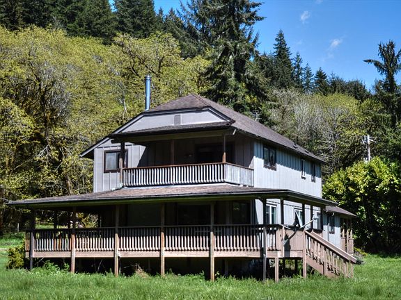 Please make an appointment to see this beautiful property. The home has coastal mountain views, elk, deer, and other wildlife. Privacy and seclusion just 21 miles from the beach. Most of the acreage is flat and useable for farming or agriculture. The house is on the back of the property nestled up to the woods away from the highway. The Barn could be used as a shop and also livestock. Newer laminate flooring in the living room. The dining room and kitchen have pergo. Some of the windows have been switched to vinyl. The wood stove is certified. One small section of the property has river frontage. The house is out of the flood zone. The large covered porches are begging for barbeques, rocking chairs and lemonade. Come enjoy the good life!
