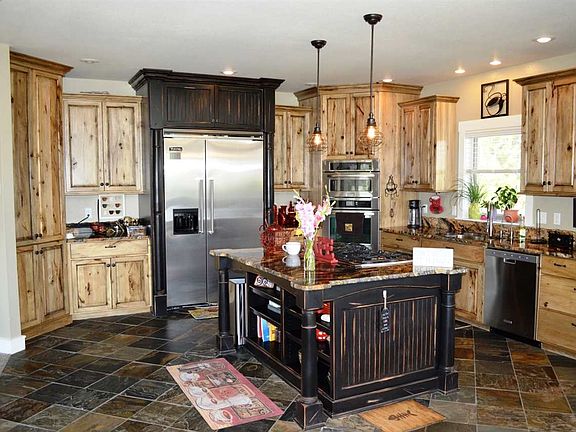 Gorgeous 5 bed, 3.5 bath on 1.2 Acres = tons of space! Large, open kitchen with knotty hickory cabinets, double built-in convection oven & microwave, tile floors, & beautiful granite countertops that continue throughout the house. A dual system gas/wood fireplace centers the vaulted-ceilinged living room with exquisite views of Moscow Mountain. Master suite on main floor. 3 beds, 1 bath, & add'l laundry hook-up upstairs. Walk-out basement has laundry, recroom, workshop/craft & theater room, + a bed & a bath