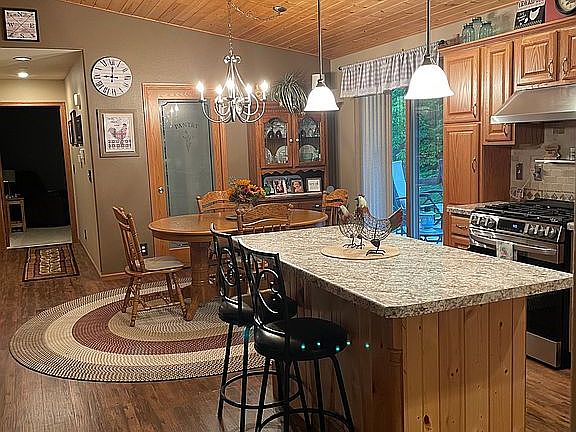 Beautiful secluded home with 140 acres prime property Majestic oaks maples and pines ponds trails and blinds established food plots Pole barn with heated room used as a processing and aging of your Buck Enjoy morning coffee on the cedar deck with your only neighbors Deer fawns and turkeys Attached garage has entrance to basement for easy access Definitely a all year round home from hunting,atv riding snowmobiles snowshoeing or just walking the groomed trails to feed the fish in the ponds all acreage is connected for easy access and homestead taxes Pine plantation on the first forty will soon be ready for first thinning Our home is a beautiful 3 bedroom 2 1/2 bathroom completely finished basement with attached garage and basement access from the garage Kitchen has soft closing cupboards and drawers New appliances and a huge walk in pantry Master bedroom has private bathroom and walk in closet Too many things to list on our home Message or call for a showing 9064203441
