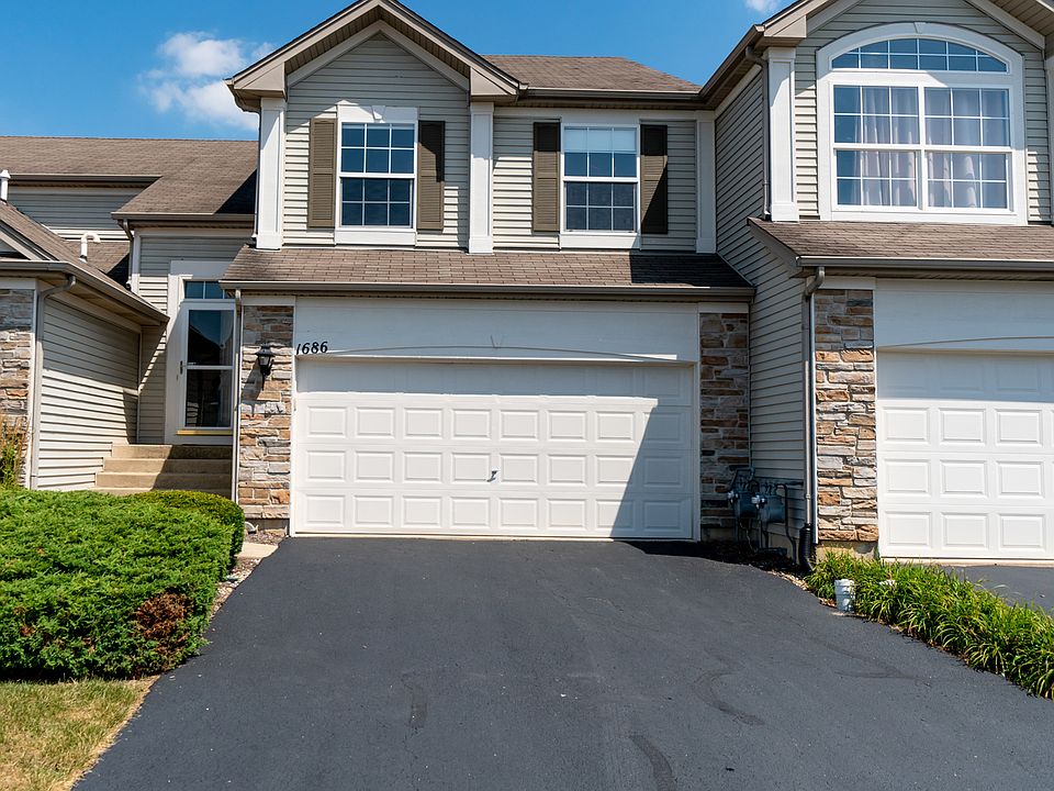This 1572 square foot townhome home has 2 bedrooms and 2.0 bathrooms. This home is located at 1686 Fredericksburg Ln, Aurora, IL 60503.