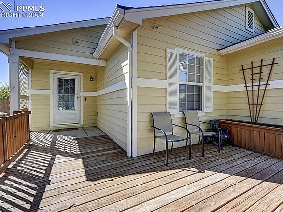 This is a must see; gorgeously designed and meticulously maintained home. This home features 3 bedrooms, 2 bathrooms, wrapped around a spacious living room with a perfectly located fireplace providing a warm and inviting ambiance throughout, an amazing kitchen just off to the side featuring tons of utility and storage space. And don’t forget about the dedicated dining area with plenty of natural light coming through the windows and glass backyard walkout doors. As you wander out to the back yard, you’ll notice that there is no lack in entertainment space with this huge custom patio with a built-in grill, all while providing ample yard space. Backed to open space with mountain views, this backyard oasis will entertain for nearly any occasion. This home is conveniently situated close to Ft Carson, shopping, hiking, and interstate access. This home is even available with assumable financing featuring an attractive rate. Inquire today for more details.