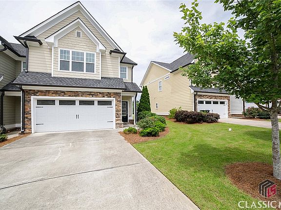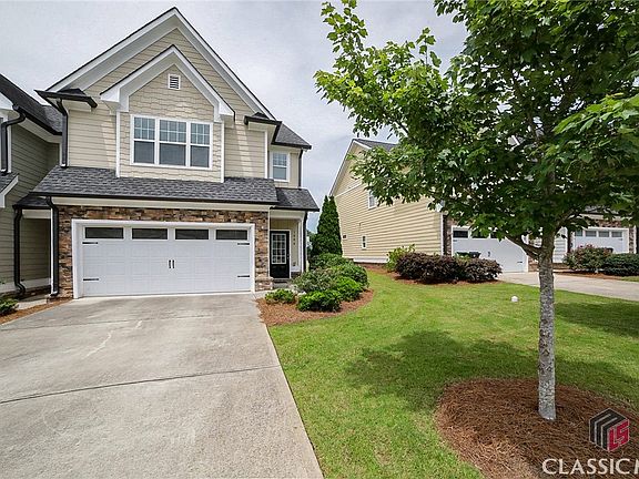 LIVE, WORK, DINE, PLAY is the epitome of the Franklin Grove community. Everything you need is at your fingertips…office space, local restaurants, and the security of a gated community with a stacked amenities package. — Not to mention it’s hosted in the coveted North Oconee School District, and provides direct access to Hwy. 78 and Hwy. 316. Presenting a highly sought-after end unit, this spectacular 2-story home is detailed with upgraded appointments and a comfortable disposition providing easy year-round living. Discover the charm of this inviting, open concept that seamlessly blends the great room, dining area, and kitchen creating the ideal layout for entertaining. Gather around the cozy stone-accented fireplace in the living area, creating the perfect ambience, for a little relaxation. The kitchen, a culinary enthusiast’s dream, not only features expansive granite counters, and subway tile backsplash, but also offers a little flare with the custom grey cabinets and furniture-styled island adding a little pop of color. An oversized pantry with shelving system is sure to impress, and the kitchen is complete with a total appliance package including the refrigerator. The kitchen effortlessly extends the to the spacious sunlit dining area that could easily seat 6+. For added convenience, the main level is complete with a powder room, extra closet storage, and access to the garage. When you’re ready to unwind at the end of a long day, ascend the stairs and take your pick from one of the 4 bedrooms. Graciously-sized, the owner’s retreat is complimented with ample space for not only large furniture, but also a sitting area, and is accented by a triple picture window setting the room aglow. This primary suite boasts an ensuite full bath complete with dual-sink-granite-topped vanity, separate shower and water closet, Whirlpool bath and a spacious primary closet with shelving. For added convenience, the upper level also houses the laundry closet in the oversized landing. Even though this home provides low maintenance exterior, that doesn’t mean that it doesn’t offer outdoor living. An open-air patio overlooking an expansive field of green space is just outside your rear door. This vibrant swim and tennis community, is lined with sidewalks, boasts a clubhouse featuring a fully equipped kitchen, and a workout room. Experience a lifestyle of comfort and convenience in this beautifully maintained townhome! Welcome to the Franklin Grove!!!