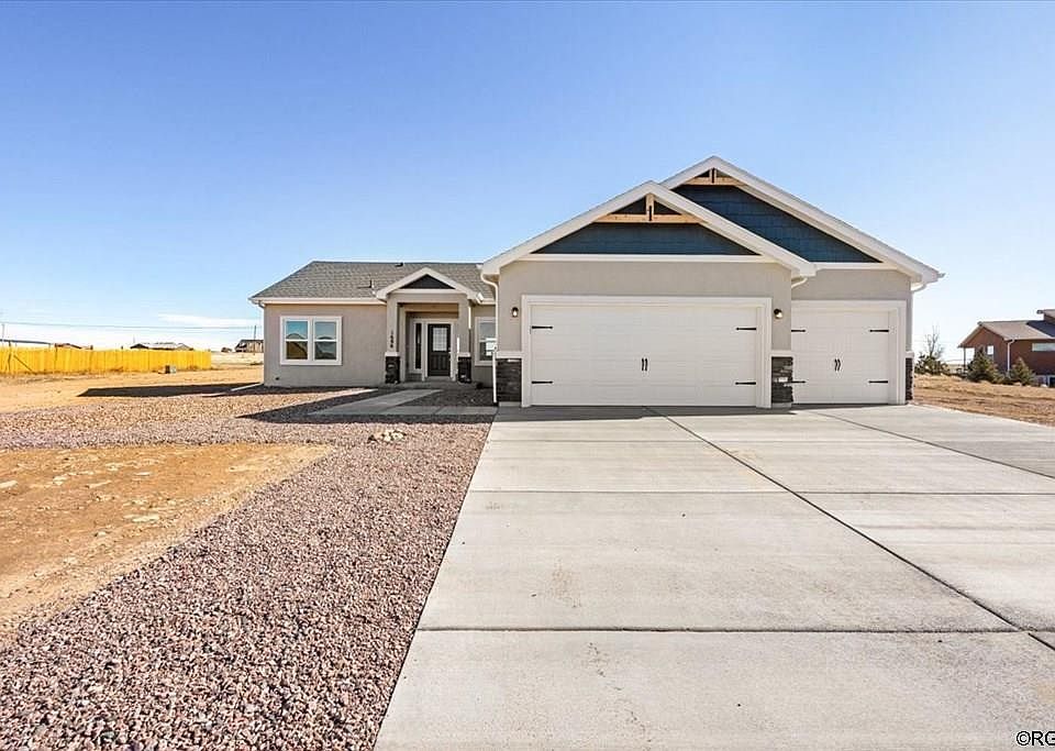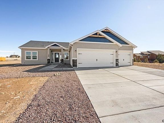 Spacious one-level living! This spectacular ranch-style home will definitely impress you! As you head inside this home, you find the dining room which is just off of the entry way and a spacious living room straight ahead with built-in shelves and a cozy electric fireplace. The living room opens up nicely to the kitchen for an open-concept design. The Kitchen has recessed lighting, a pantry, stainless steel appliances, gorgeous white cabinets, a large center island with quartz countertops, counter bar seating and more. Just off the kitchen is the breakfast nook. It has large windows and a walk-out to the backyard where you'll find lots of room for entertaining. The master suite is very spacious and adjoins a 5 pc master bath with quartz countertops and a walk-in closet. The laundry/mud room has access to the 3 car attached garage with 2 garage door openers. Front yard will be xeriscaped. Located in beautiful Pueblo West on Acreage Lot located by Lake Pueblo and Close to Hiking and Biking Trails.