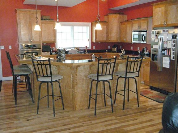 Custom built home with open floor plan. Beautiful hickory hardwood floors. Custom birch cabinets. Stainless steel appliances. Granite countertops in kitchen. Master bath features ceramic tile with large double shower. Attractive gas fireplace. Garage plumbed for gas heat (not installed) GFA heat with electric off peak. Central air. Steel siding with vinyl shakes.