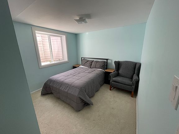 Main bedroom: Full-sized bed, reading chair, closet space, bright egress window