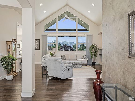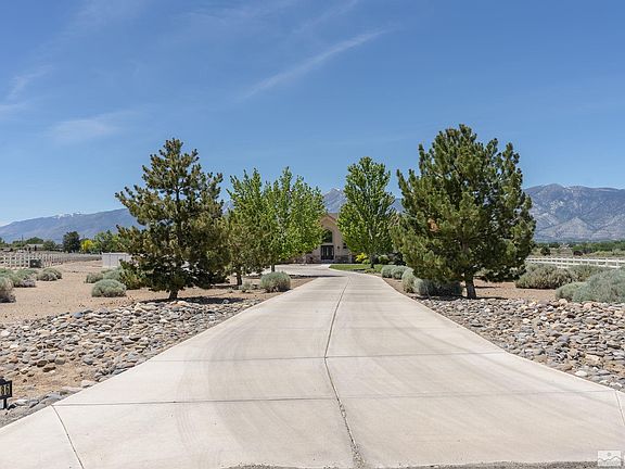 Perfectly maintained home with incredible views of the Sierra Mountain Range. The home has been recently remodeled with porcelain flooring throughout with the exception of the bedrooms and baths. The bonus room has carpet. The window coverings are beautiful and allow privacy while letting in the light. Over 47 trees have been planted and are on a drip system. Large patio off of the main living area and a fenced in smaller patio off of the garage. Tons of concrete work in the driveway and patios. For horse lovers, there is well maintained barn with 2 stalls, a tack room with heat and a/c and a covered area for a horse trailer. There are corrals and an arena. Property is fully fenced. Located in a convenient location that is close to town but feels very private. Bureau of Land Management land is just a few steps away for riding or mountain biking. The baths have travertine tile.