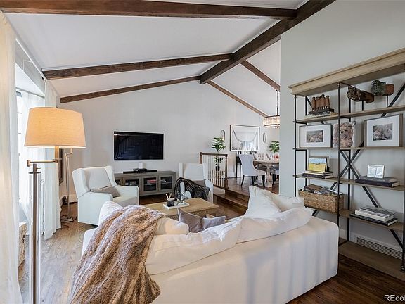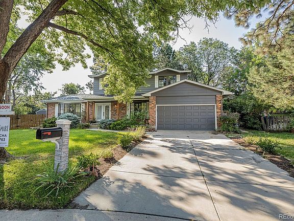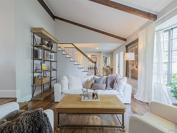 This gorgeous two-story home nestled in a quiet cul-de-sac in the heart of Village East, has been beautifully updated and meticulously maintained. The kitchen features quartz countertops, an electric cooktop, double ovens, newer stainless appliances, apron sink, and custom 1" live edge Canadian black walnut shelving. Just off the kitchen you will find the sunny dining area featuring a custom Art Deco inspired crystal chandelier from Restoration Hardware. The sunken living room features a charming bay window and vaulted ceilings with exposed wood beams, and original hardwood floors with Jacobean finish. The kitchen was expanded to include a bar and sitting area. Just off the foyer is a large office with a closet which would also function perfectly as a 5th bedroom. Upstairs you will find the Master Suite plus two additional spacious bedrooms. This lovely home is complete with a finished basement with conforming bedroom, 3/4 bath and family room/playroom. The AC unit, water heater and furnace were all replaced last year! The expansive backyard is an entertainer's dream with an enormous deck, mature trees, storage shed and playset included! Ideal location in the Cherry Creek School District, 3 minutes to Gardens on Havana Retail District, and 7 minutes to Nine Mile Light Rail Station.