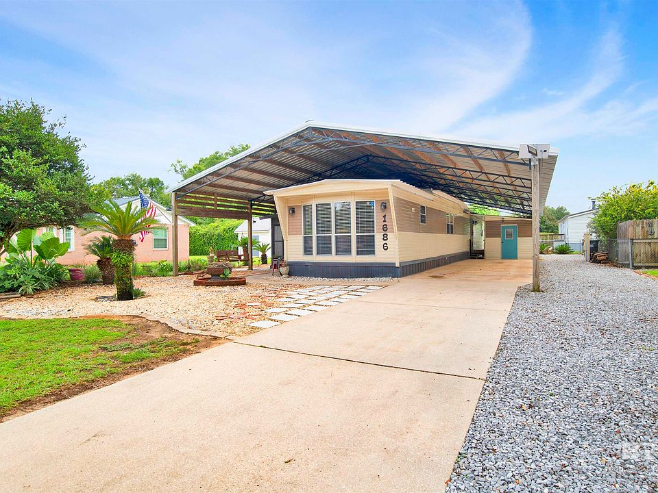 PRICE REDUCED!!! MOTIVATED SELLER!!! ALL OFFERS ARE WELCOME!!! Come find your your Beach Retreat in the resort community of Spanish Cove. This one is a total beach darling! Make sure and watch the Virtual Tour for all the details. It's perfectly located within minutes of the Perdido Bay, Pensacola shopping, VA hospitals and the beautiful Alabama and Florida beaches! This beach get-away has been enjoyed immensely and lovingly enhanced and it's all under one gigantic pole-barn roof! The enclosed front porch is huge, air conditioned and opens out to an outdoor kitchen and storage. The main home is a 2 bedroom, 2 bath with an adorable front custom kitchen, where light floods into the large bay windows. The eat-in kitchen features 2 large stainless refrigerators, and stainless dishwasher, tons of cabinets and a huge breakfast bar. Shiplap has been added to several rooms and both bathrooms have been updated with new vanities and fixtures. The primary bath was expanded to include a stand up tiled shower with pebble-stone floor. Backyard is fenced and under the large room is room to park a boat with another double storage building that has a bonus-option area inside! All data is accurate but not guaranteed. Buyer to verify all measurements and info. Buyer to verify all information during due diligence.
