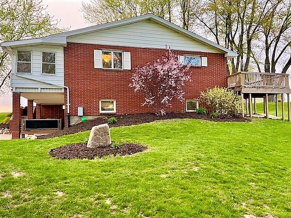 This brick raised ranch is situated on .85/acre, corner lot in the Lakeview Hills Subdivision. The main level consists of 3 spacious bedrooms, an oversized kitchen with pantry and dining area overlooking the living room with stone woodburning fireplace. Large 3-season porch with electricity offering beautiful sunset views as it faces the west. New carpet in the bedrooms, living room, and wide stairway to the lower level. New knock-down textured drywall throughout. The walk-out Lower Level (900 sq feet) consists of a family room and an additional storage/bonus room that has vinyl water-proof wood plank flooring. Separate laundry room and 3/4 bath. The entire basement has 2" rigid foam insulation installed to the interior foundation walls. Oversized garage with epoxy floor, air-conditioning, heat, hot and cold water, LED lighting, 200-amp welding receptacle and 2 newer garage door openers. Additional 30x30 building/garage has a loft for storage, a newer garage door opener, LED lighting, epoxy floor, and 220V receptacles for welders and industrial grade saws/equipment. The extra cement parking pad is large enough to park a full-size RV and has a designated 220V receptacle to fully power a camper/travel trailer/RV. Furnace, Central Air and 50 Gallon Water Heater (approx 6 years old). Well (2005). Water softener, water filtration system, and much of the electrical throughout the house was replaced within the last 7 years. The Lakeview Hills Home-Owners Association dues are $75.00. and allow members swimming and fishing access at Lake Jude and access to the baseball/softball field. All are visible from the newer 30x12 deck.