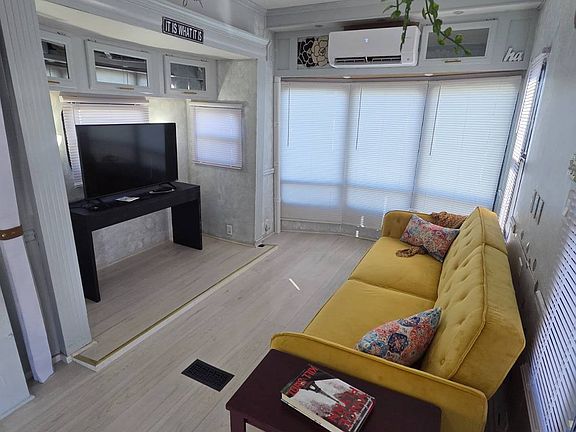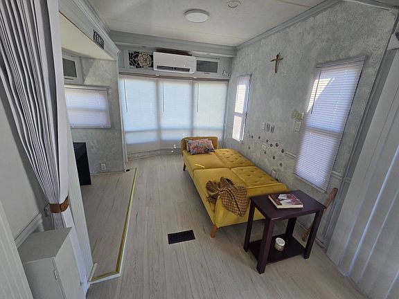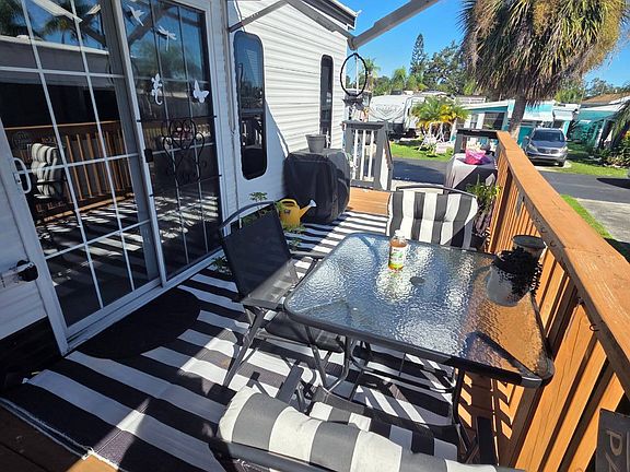 This fully furnished 1-bedroom, 1-bathroom travel trailer is located in the all-age community of Avalon RV resort. The lot rent is $568, and includes water, sewer, trash, and lawn care. The park has a heated pool, shuffleboard, laundry facilities, and a clubhouse with many monthly activities. This trailer can't be moved anymore due to some previous flooding before the sellers purchased it, which caused the slide-outs to be inoperable. It has been completely rehabbed recently with a new roof, 2 new mini split systems, new subfloor, and flooring. The bedroom has a pull-out bed in it and can be folded up for more room during the day, and the living room couch also folds out into a bed. There is a large shaded deck on the outside, with storage underneath. There is a large detached shed with electricity already connected for extra storage. It is rare to have a backyard in this park, and this unit has one. This community does allow 2 pets of any size, but breed restrictions do apply. Don't miss your opportunity to grab this at a great price in this highly desirable community! All listing information is deemed reliable but not guaranteed and should be independently verified through personal inspection by appropriate professionals. Integrity Mobile Home Sales cannot guarantee or warrant the accuracy of this information, measurements, or condition of any property. Measurements are approximate. Lot rent is subject to change.