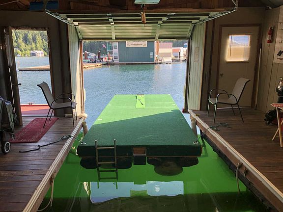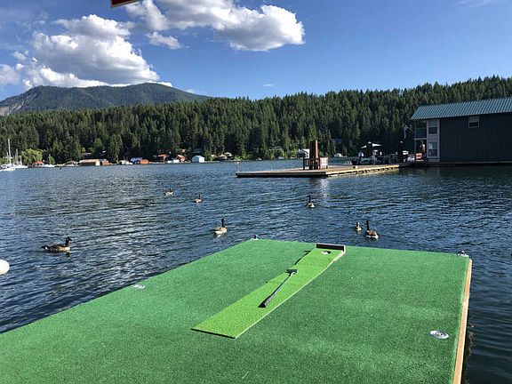 Your own FLOATING GREEN! 2 Bed, 1 Bath, float home located on Beautiful Lake Pend Oreille in the quaint lake front town of Bayview Idaho. Float home was completely remodeled in 2017. The main living area is very welcoming and houses a bright and open concept kitchen and living room. The master bedroom is on the main floor. The sleeping loft is private and can sleep 4. Boat garage holds up to a 28' boat and provides lots of storage for water toys. Removable 8'x18' barge with motor can be used as a sun deck or garage floor. Walking distance to the grocery store and several local restaurants and watering holes. Close proximity to a public boat launch and minutes away from many attractions and outdoor adventures.