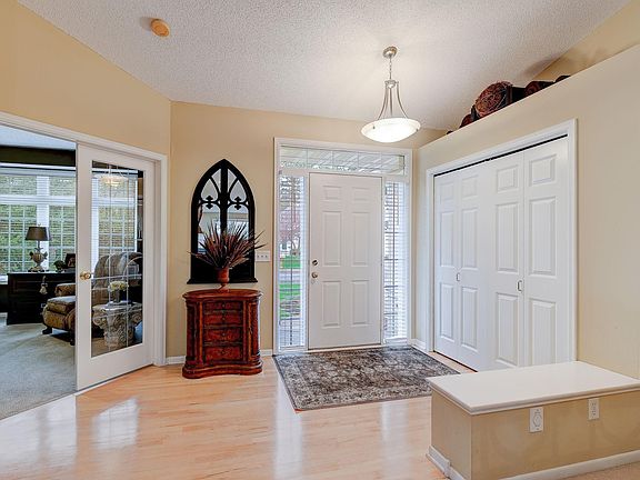 Run don't walk to this exceptional 4bed/3bath TH. Everything on one level but tons of room to spread out and entertain. Main level has open floorplan with vaulted ceiling and recessed lighting. Maple floors with white trim and cabinets, 3 sided fireplace with tile surround, cozy family room with wonderful views and a gourmet kitchen. Tons of counter and storage space, granite counter tops with large kitchen island, SS appliances and kitchen window. Cedar deck with views of Crystal Lake golf course. Main floor master with en suite full bath. Dual sinks, free standing shower and whirlpool jetted tub. LL has corner bar with under counter refrigerator and sink. Loads of storage for drink glasses and serving pieces. Walk out to a private patio. 2 beds/1 three quarter bath and a flex room round out the LL. All bedrooms have walk in closets. Short walk to schools, restaurants, golf course, parks and sporting fields. Set up your showing today...don't let this one get away.