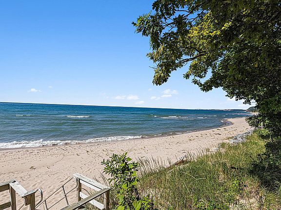 Experience the very best of lakeside living with 100 feet of private, direct frontage on one of Lake Michigan’s most breathtaking beaches. Nestled in the desirable Starkey Point neighborhood of Arcadia, this 3-bedroom, 2-bath home offers panoramic water views, spectacular sunsets, and year-round outdoor adventure right outside your door. The main floor features an expansive family room with wall-to-wall windows framing endless lake views. A floor-to-ceiling stone wood-burning fireplace creates a cozy focal point for gatherings, while the main-floor primary bedroom and full bath add convenience and comfort. Upstairs, you’ll find a spacious bedroom with a walk-in closet and private balcony overlooking Lake Michigan, along with another guest bedroom and full bath. Step outside to the expansive back deck, just steps away from the pristine sandy shoreline perfect for entertaining, morning coffee, or evening sunsets. Swim, stroll the beach, or search for Petoskey stones, all from your own backyard. In addition to Lake Michigan frontage, you will enjoy shared access to Arcadia Lake, plus nearby rivers, inland lakes, and miles of hiking and biking trails. The home is ideally located along scenic M-22, just minutes from Arcadia Bluffs Golf Club, the C.S. Mott/Arcadia Dunes Nature Preserve, and a short drive to the charming shops and dining of Frankfort and Onekama. This is a rare opportunity to own a private stretch of shoreline with unmatched access to Lake Michigan. Don’t miss your chance to make lakeside living your everyday reality.