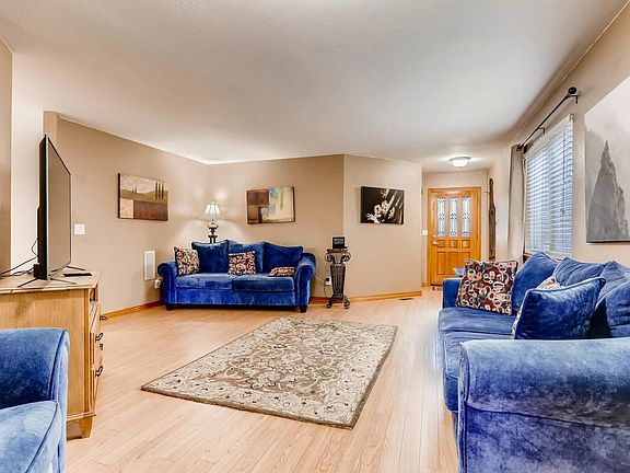 SHOWINGS START AT 9AM ON 8/4/18. Don t miss out on this beautiful home conveniently located to shopping, restaurants, E-470, parks and miles of walking & biking paths. This home features an open floor plan w/4 beds, 3 baths, and over 1700 finished square feet with a finished basement. The main floor features a family room with wood laminate floors, vaulted ceilings, kitchen with newer refrigerator & oak cabinets, dining area and gas fireplace insert. Upstairs features a master bedroom w/vaulted ceilings, his & hers closets and updated bath, 2 additional bedrooms and a full updated bath. The finished basement has a family room, bedroom, newer carpet, half bath, laundry room & storage room. Other special features include central A/C, upgraded light fixtures, 2 car garage w/newer garage door, newer exterior paint, ceiling fans, nice back yard with deck that is perfect for the kids, pets & entertaining friends. All appliances included, no HOA and highly rated Douglas County Schools.