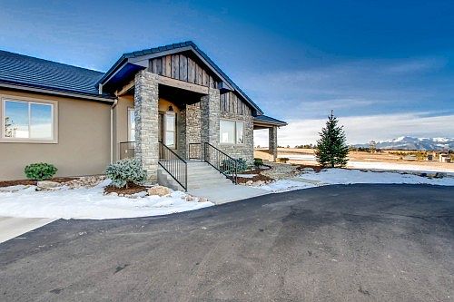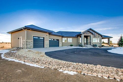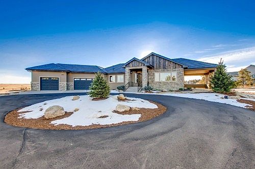 Views, Views, Views. This Colorado contemporary home offers spectacular panoramic views from Pikes Peak to Mt Evans. Located in Settlers Ranch on 2.5 acres, this beautiful rancher offers an open main level floor plan making this the ideal home for living and entertaining. Enjoy the spacious main-level master suite, 2nd main-level bedroom/office, gourmet kitchen, private breakfast deck, and expansive covered patio along with an oversized 3 car garage.