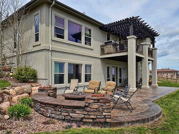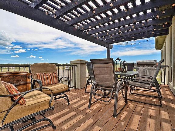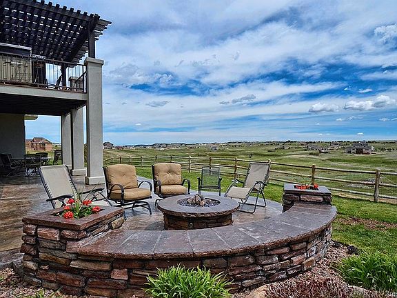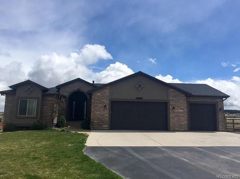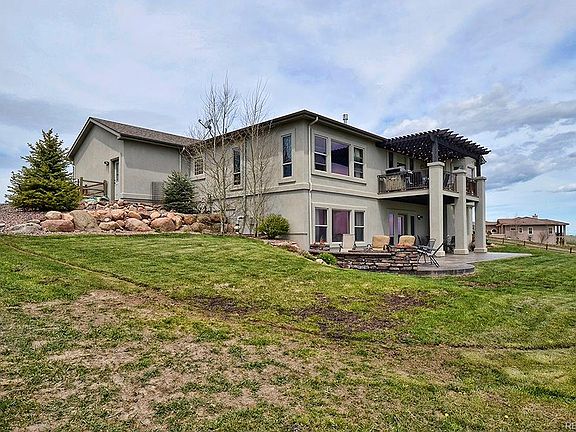 Ranch home greets you w/custom sidewalk w/concrete overlay, includes 5 be, 3 ba, 3 car located on 5.05 acres w/Pikes Peak Views! The gourmet kitchen boast granite counter tops, stainless steel appliances to include viking gas range/oven & microwave, 42" cabinets, breakfast bar, hardwood flooring & bay window. Enjoy the one level living that offers wood flooring, some custom carpeting, custom drapes, 6 ceiling fans, 2 gas fireplaces & main level laundryw/built in cabinets & sink. A great entertaining home!Colorado custom deck w/stamped concrete patio w/gas fire pit, plumbed for gas & seating area (51x17) Colorado custom deck Pergola off kitchen w/gas line for BBQ. (22x10)The horse enthusiast will be delighted w/all of the detail to include; 1296 sqft metal barn(36x36), insulated roof, 4 Priefert stalls w/outdoor run, classic equine heated auto waterers, concrete floor except in stalls where you have crushed granite w/rubber flooring for improved drainage & comfort, custom insulated